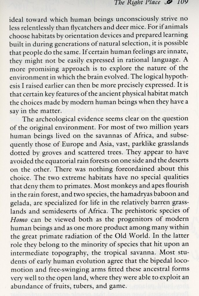 And now E. O. Wilson’s suggestion that the savannah was the landscape to which humans were most drawn: